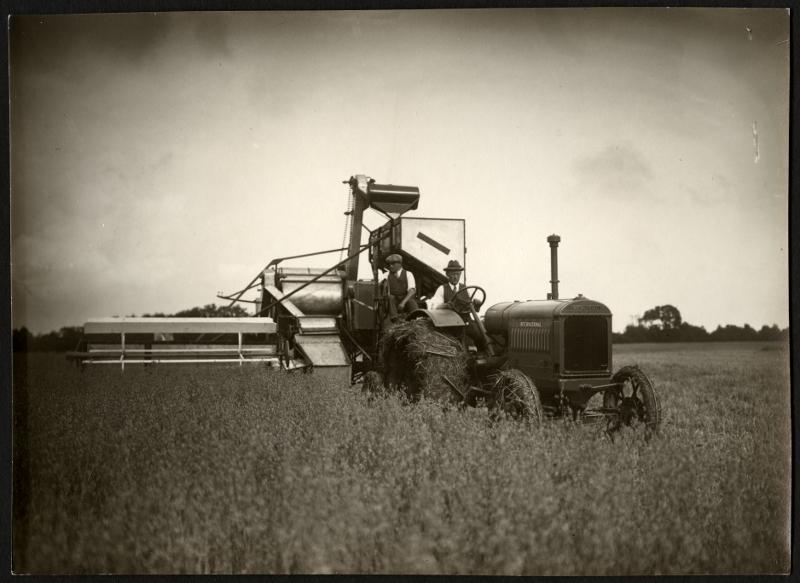 Skördearbete - första skördemaskin i skandinavien som hugger och tröskar samtidigt, Albert Berg von Linde, Axelvold.
