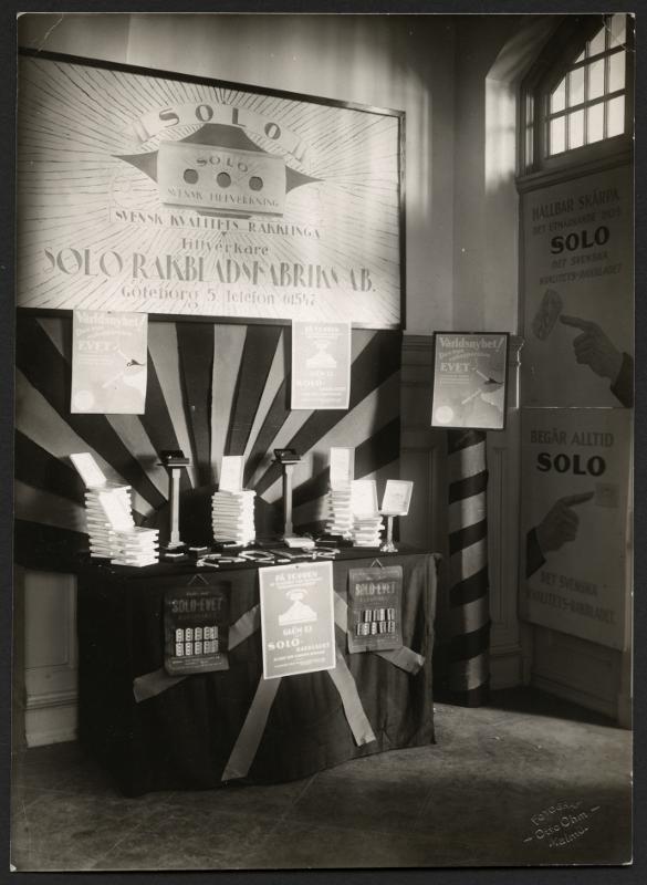 Reklamskylt Solo rakbladsfabriks ab.Troligen från en mässa. Okänt årtal.