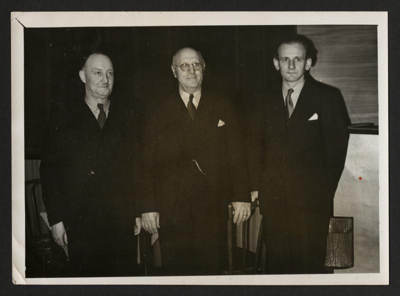 - Betodlaremöte på Saga biografen i Lund. Sveriges betodlares centralförening hade på tisdagen inbjudit till allmänt möte där föredrag hölls av Agronom Ivar Backér, centrallaboratoriet och Professor Å. Åkerman. Bilden visar från vänster professor Å. Åkerman Ordförande, riksdagsman Anders Ericson samt agronom Ivar Bachér.