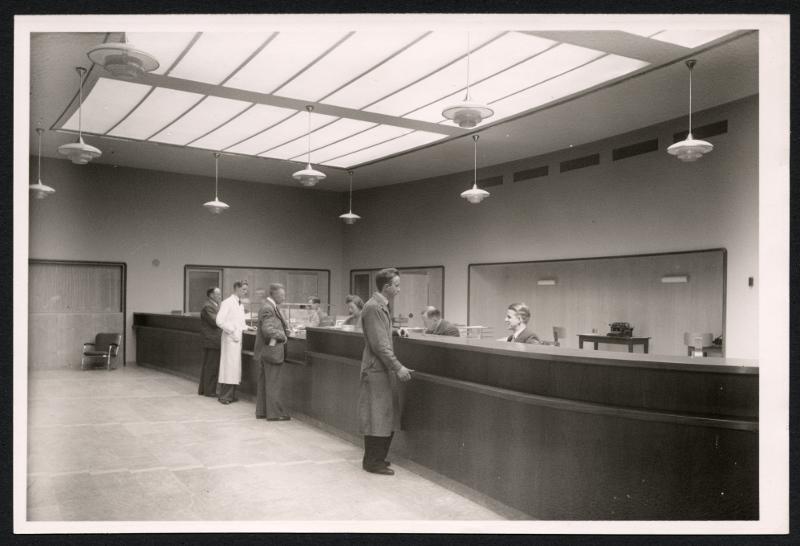 Fyra män står vid en disk.