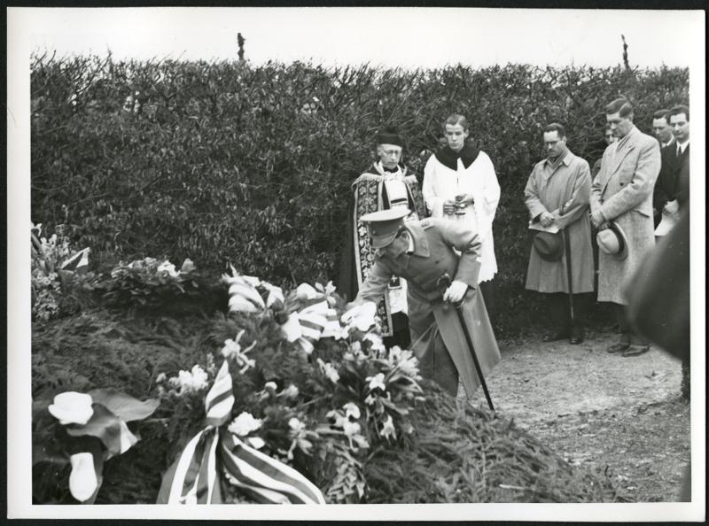 Bilden visar överste af Sillen nerlägga en krans vid graven.