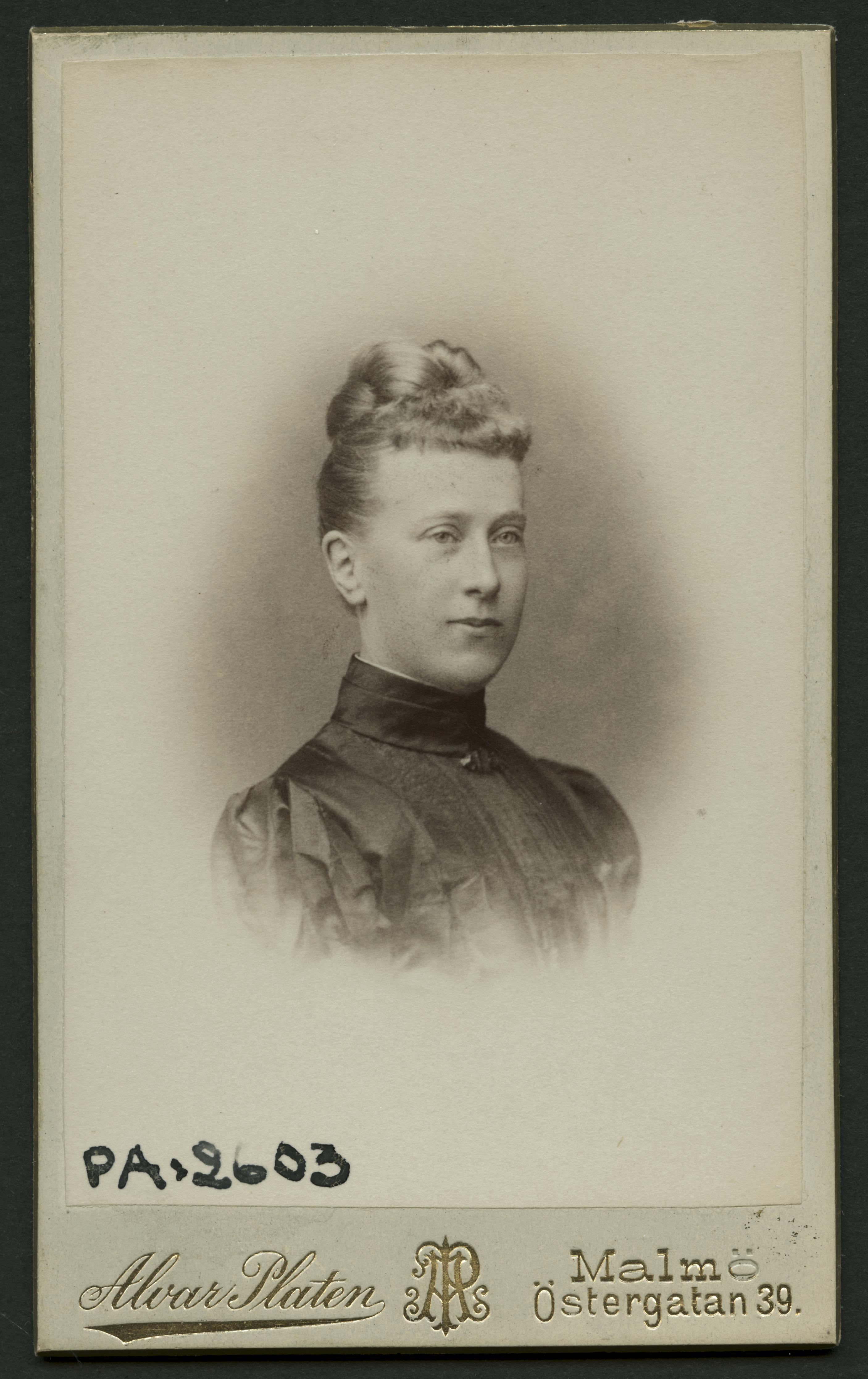 Visitkortsfotografi. Porträtt av okänd kvinna.