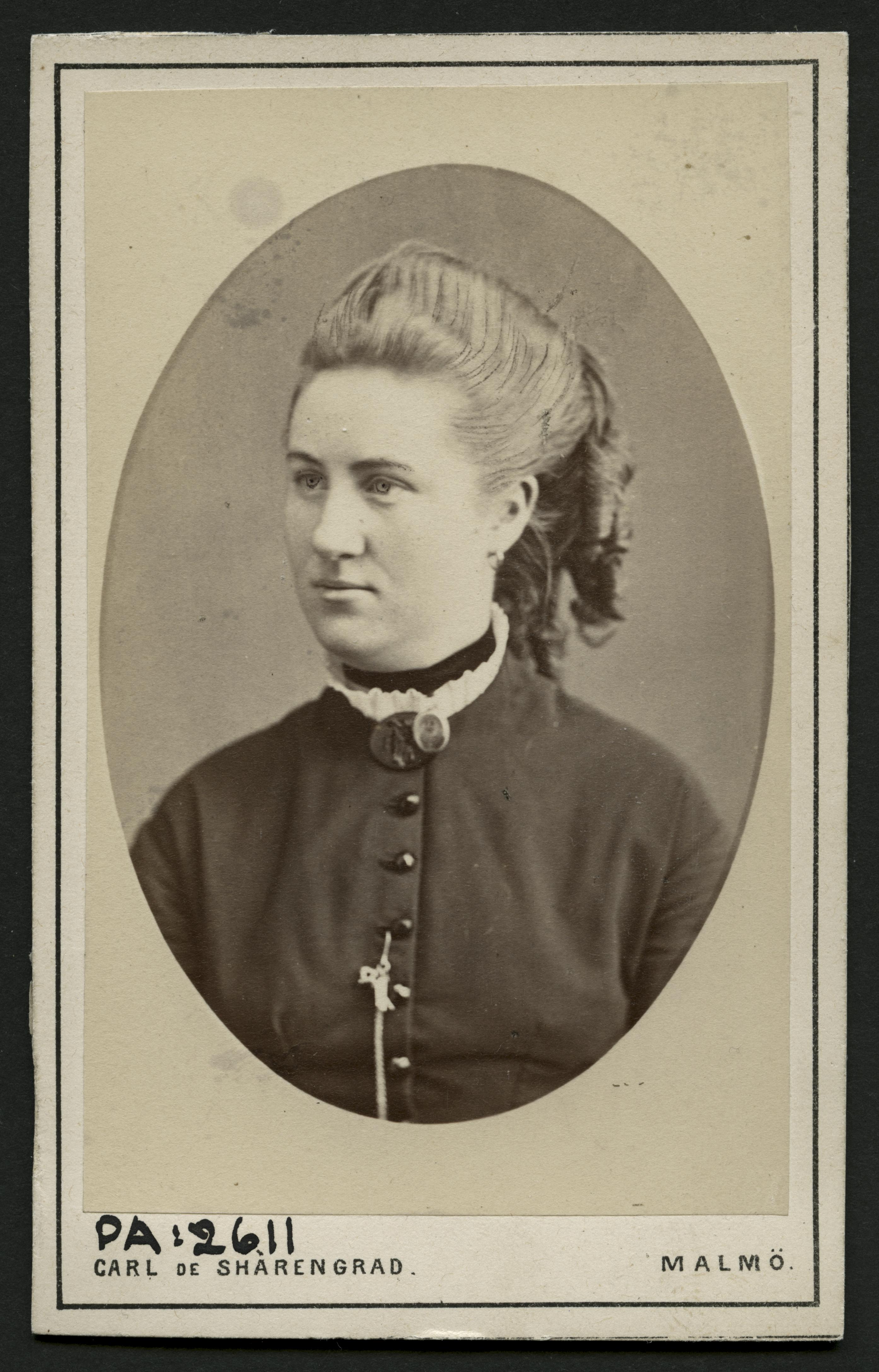 Visitkortsfotografi. Porträtt av okänd kvinna.