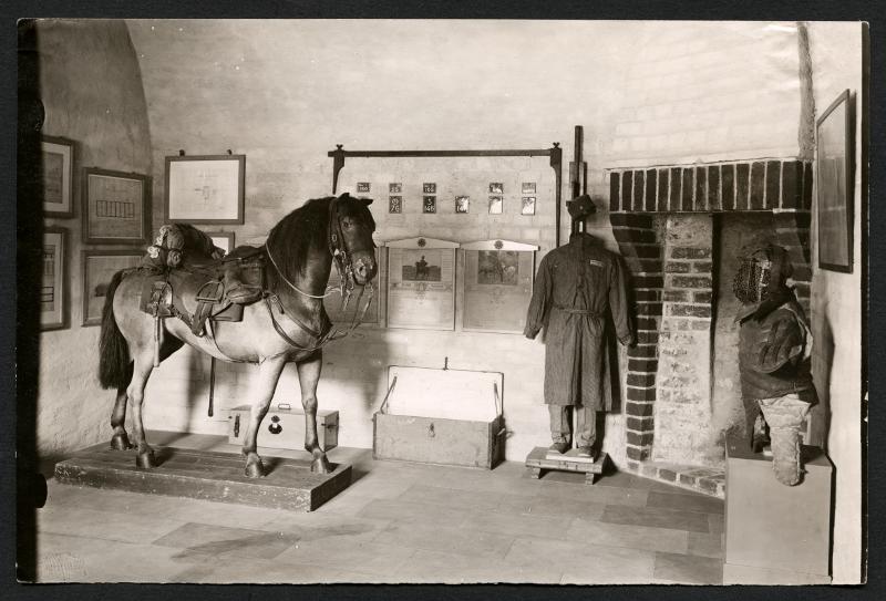 ROO 004516 :: malmöhus, tavlor, tavla, rustningshjälm, häst, interiör, sadel, slott, museum