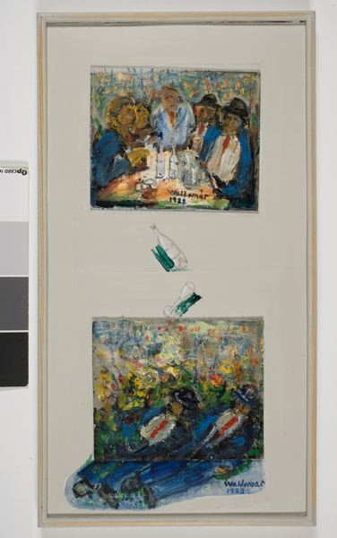 På målningens baksida har ÅWL antecknat: "Minnesbild / från Folkets park / från 30-talet / före festen / efter festen". Målningen är där daterad 1991, medan bilderna framtill är signerade och daterade 1988.