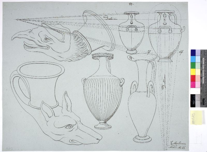 Bilden innehåller ritningar på urnor (fyra st.) och två stycken