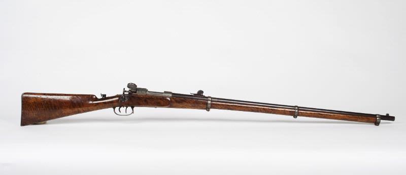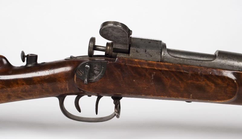 Enligt maskinskriven hängetikett: Tändnålsgevär, typ A. P. Sjöberg, 1864-1865. Försökstyp till svenskt patentgevär 1865.