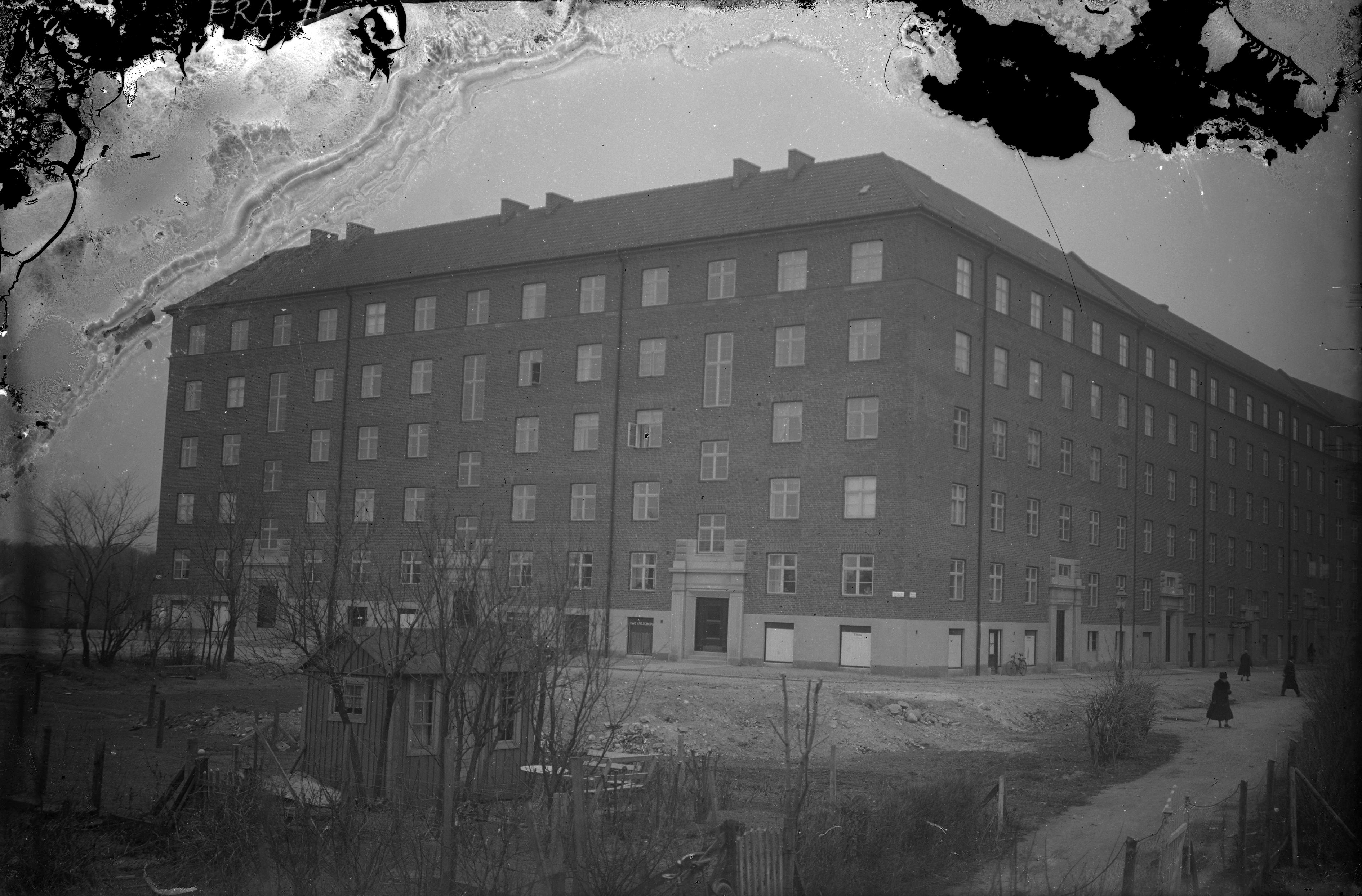 Malmö, Thottsgatan 16a-c, kv Hertigen. Helmfeltsgatan till höger. Sent 1920-tal.