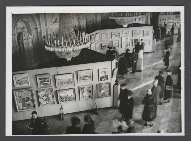 Konstutställning - Skåne. Stor vernissage i Malmö. Från vernissagen, från Skånes Konstförening utställning på Malmö Rådhus.