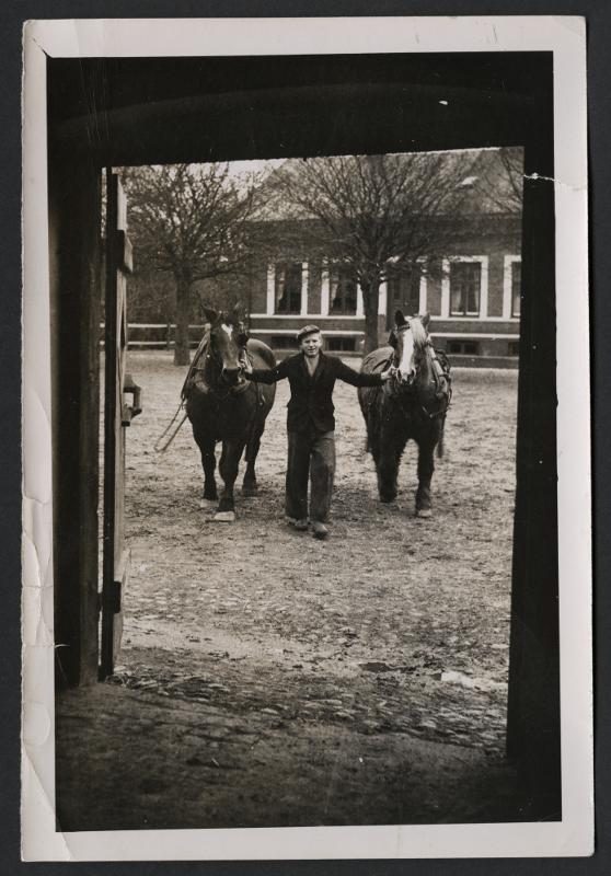 ROO 004609 :: exteriör, häst, plöjning, hästar, höstplöjning, hus, man, plöja, män, gård