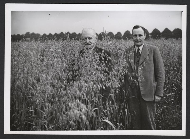 Den växande grödan. Professor H. Witte och konsulent Linder Aronson i vacket havrefält på Alnarp.