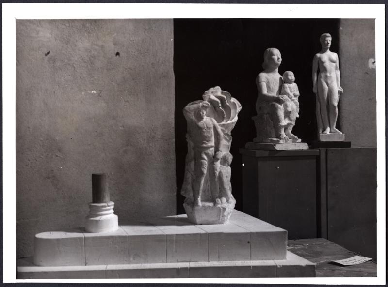 - Skulptörpristävlan i Malmö avgjord. Juryn utvalde tre Stockholmsskulptörers arbeten. Bilden visar fr.v. "Havets Hjältar" som föreslogs till konstverker på Linnéplatsen av Axel Wallenberg, Stockholm. Mottot "Kring vår flagga" för museets skulpturgård av Bror Marklund, Lidingö samt mottot "Göta" för hörnet av Bergs- och Amiralsgatan av Olle Holmsten, Alster.