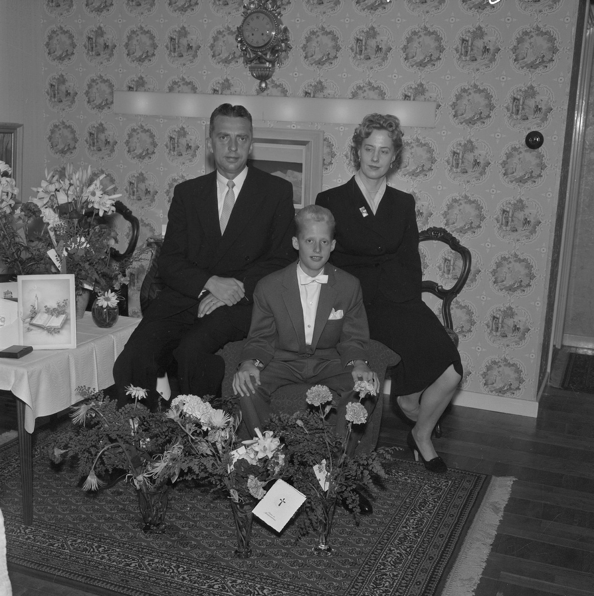Interiör. - konfirmationand man, blommor med föräldrar - Erik Bohman, Ellstorpsgatan 3 B