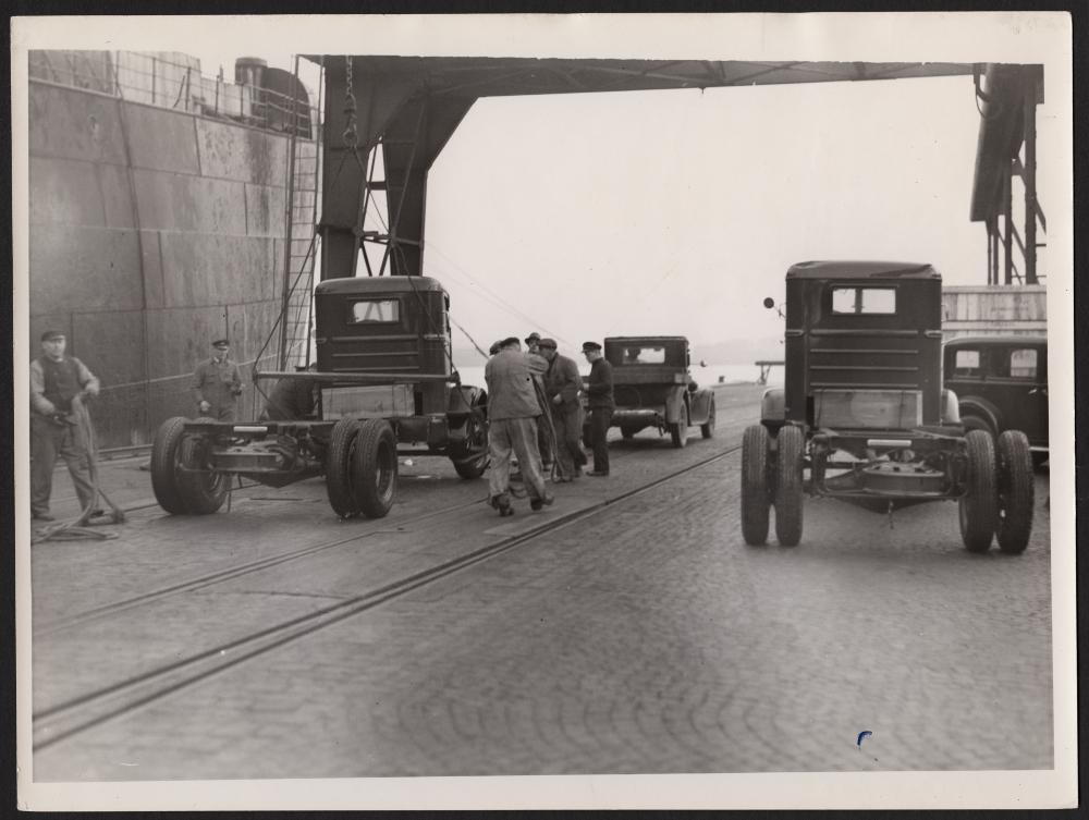ROO 005758 :: bilar, hamn, exteriör, hamnar, bil, man, lossning, frihamn, män