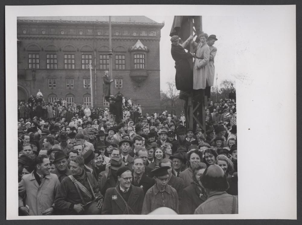 Köpenhamn. Glada Köpenhamnare på Rådhusplatsen