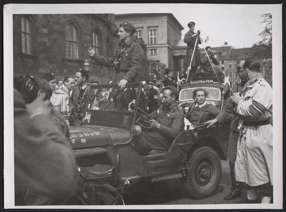 kvinna, världskriget, kamera, kameror, bil, man, filmkameror, danmark, män, militär, soldater, bilar, kvinnor, soldat, köpenhamn, militärer, andra, militärfordon, filmkamera, konvoj