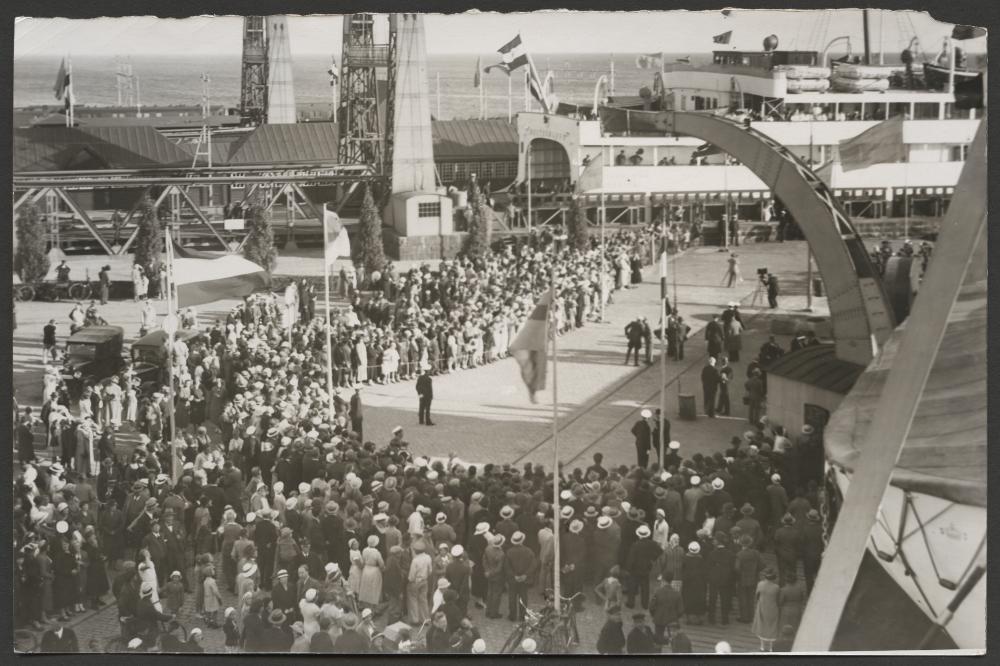ROO 005879 :: trelleborg, kvinna, hamn, kvinnor, färja, jubileum, man, män, människor