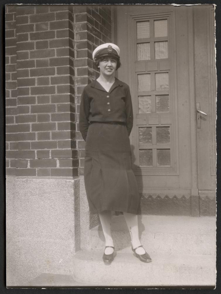 Fröken Ruth Wilkens, Malmö. Sveriges första och enda kvinnliga tulltjänsteman i uniform, tjänstgör i Malmö Frihamn.