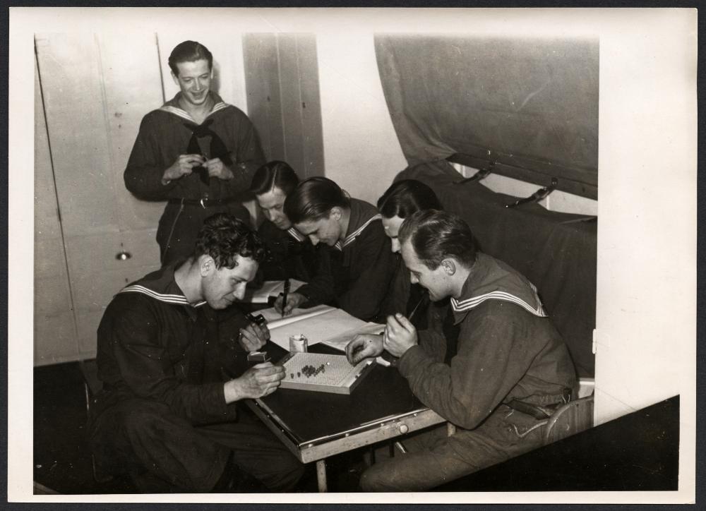 - "Fylgia" i Malmö. H.M. Pansarkryssaren Fylgia har anlänt till Malmö och förtöjt vid Kungstenen i nyhamnen, Besök ombord beredes för malmöborna under söndagen. - Bilden visar yngsta kullen aspiranter representerade av några kadetter, som pluggar navigering. Marinen Pansarskapp.