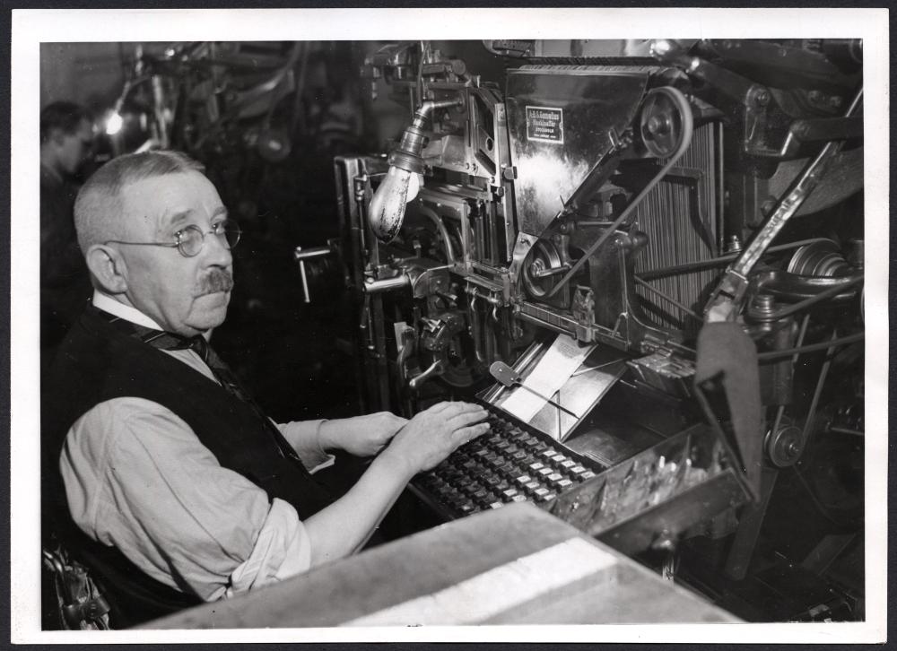 sättmaskin, skånska dagbladet, interiör, man, män, maskinsättare