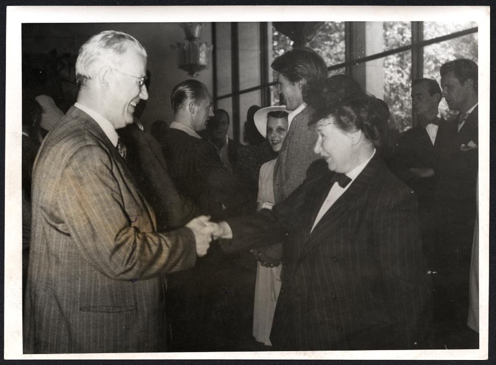 - Stadsteaterns personal välkomnas. Den vid Malmö stadsteater anställda personalen hälsades på måndagsförmiddagen välkommen av stadsfullmäktigerepresentanter med i spetsen dess ordförande direktör Emil Ohlsson. Bilden visar stadsfullmäktige ordförande hälsa Jullan Kindahl.