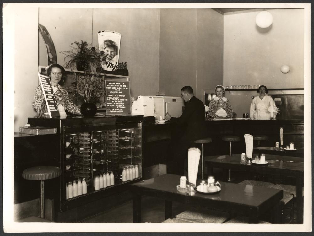 ROO 006832 :: kvinna, kvinnor, mjölkbar, kund, man, restaurang, bar, mjölk, gäst, män