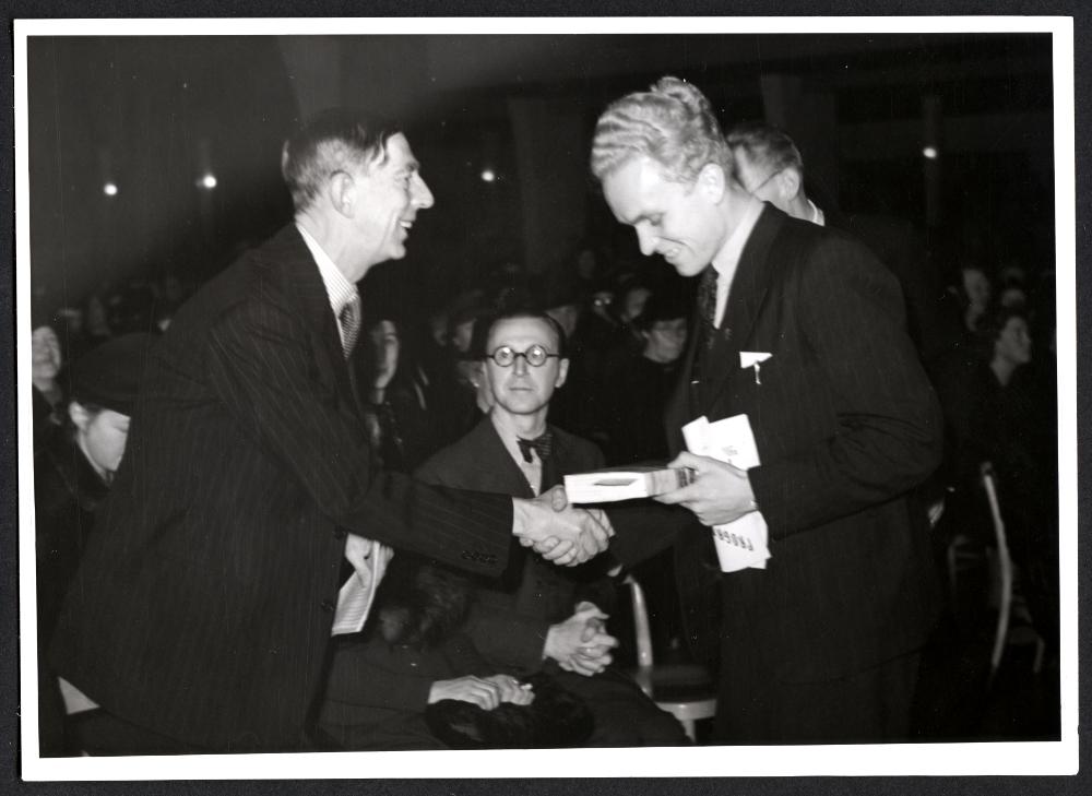 - Bokens dag i Malmö, pristagaren i andra dragningen i boklotteriet gratuleras av Prins Wilhelm och får motta författarens bok "Fritt land".