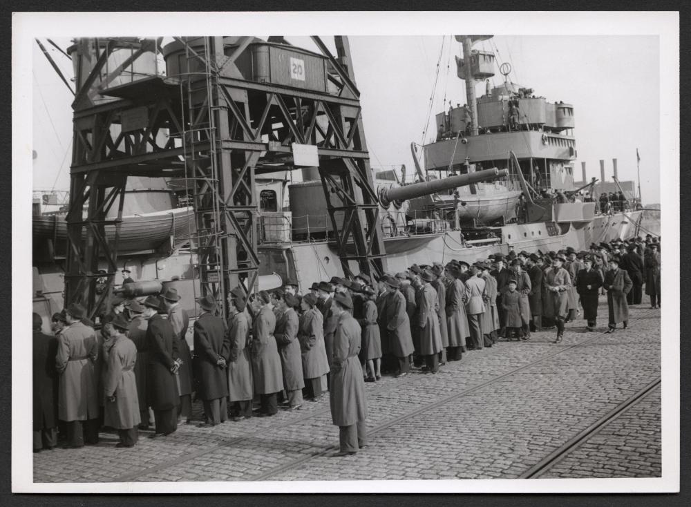 - Besöksdag på Fylgia. Pansarkryssaren Fylgia fick på söndagen besök av malmöborna, som i stora skaror sökte sig ner till hamnen i det vackra marsvädret. Bilden visar besökare i väntan på att få komma ombord.