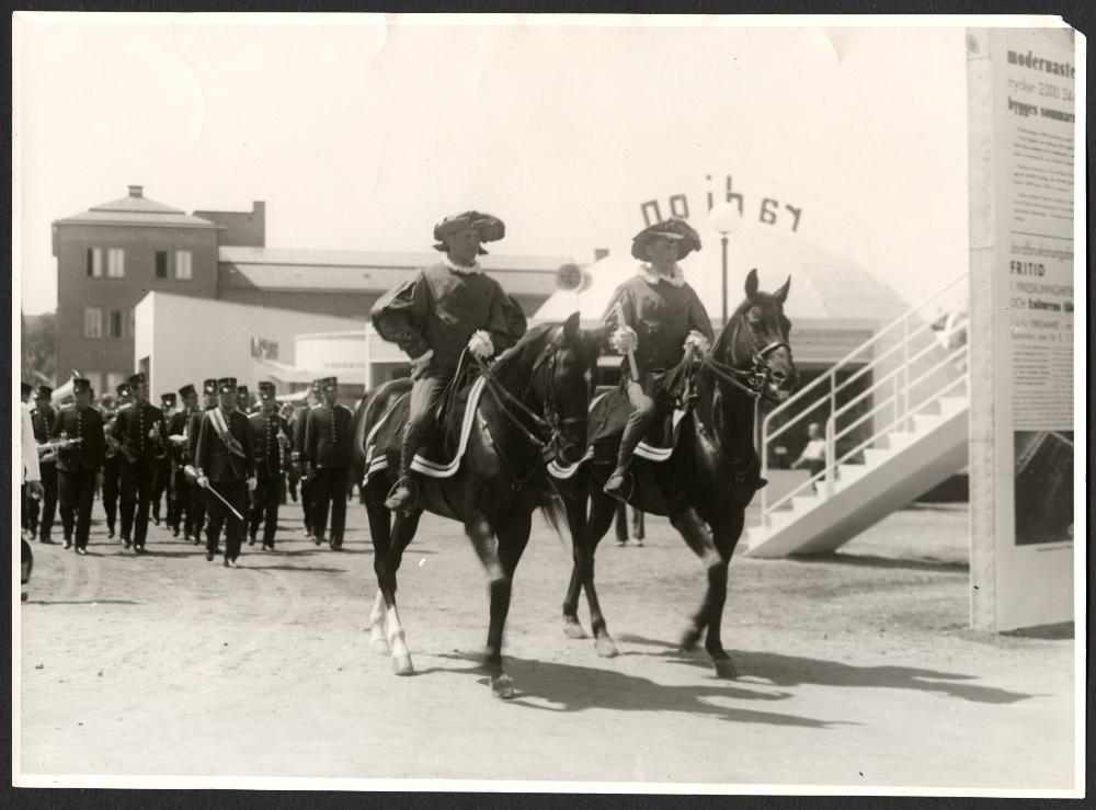 Fritiden i Ystad invigd, södra skåningarnas musikkår förträdd av häralder förkunnar utställningens öppnande.
