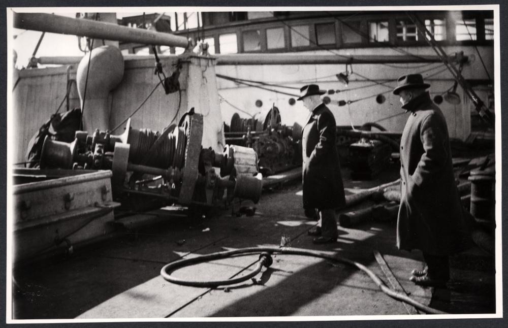 "Lidingö" minsprängd vid Falstersbo. Från förstörelsen på däck, där bland annat de kraftiga vinchmaskinerna slungats bort från sina platser.