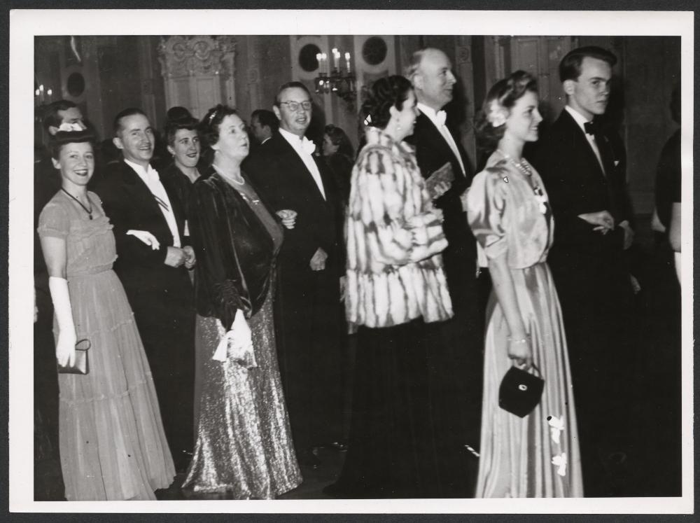 - Nyårsbalen på Malmö Rådhus. För första gången sedan krigsutbrottet avhölls på nyårsdagen den traditionella balen under värdskap av Malmö Nation. Bilden visar ett avsnitt av den festklädda publiken med borgmästare Munck af Rosenschöld, nummer två från höger.