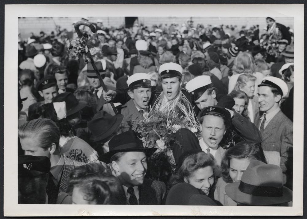 ROO 007789 :: studenter, latinskolan, blommor, fira, examen, firande
