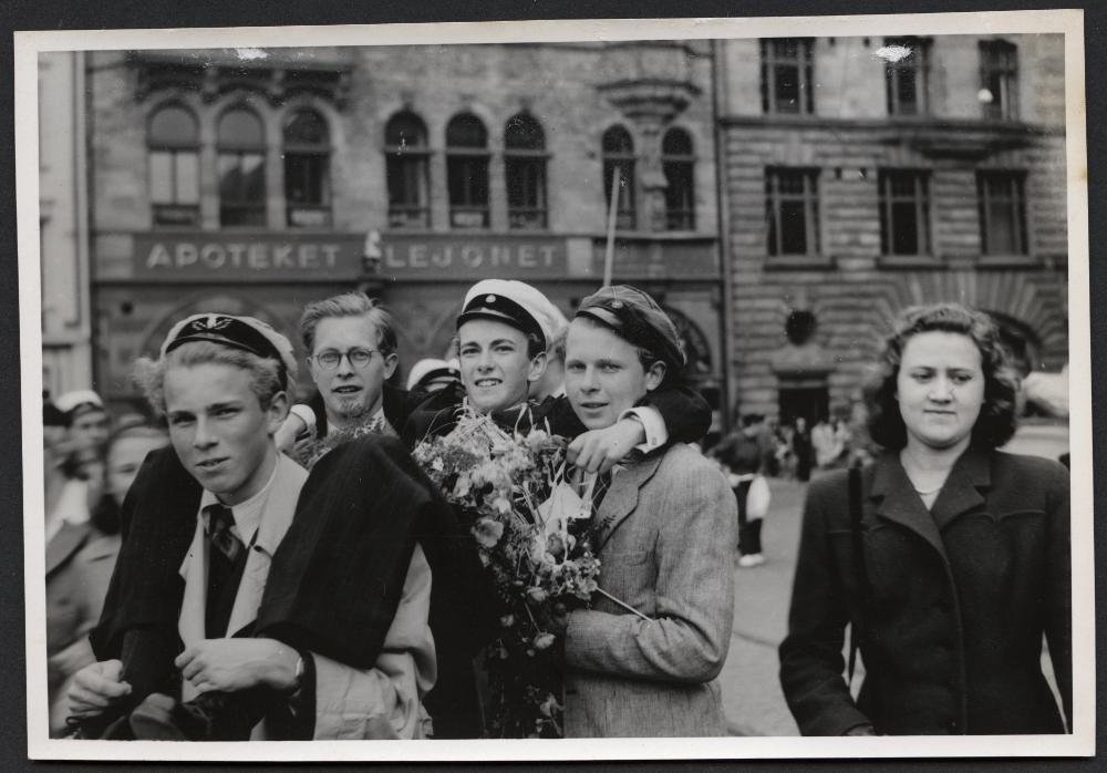 ROO 007795 :: studenter, blommor, fira, stortorget, examen, firande
