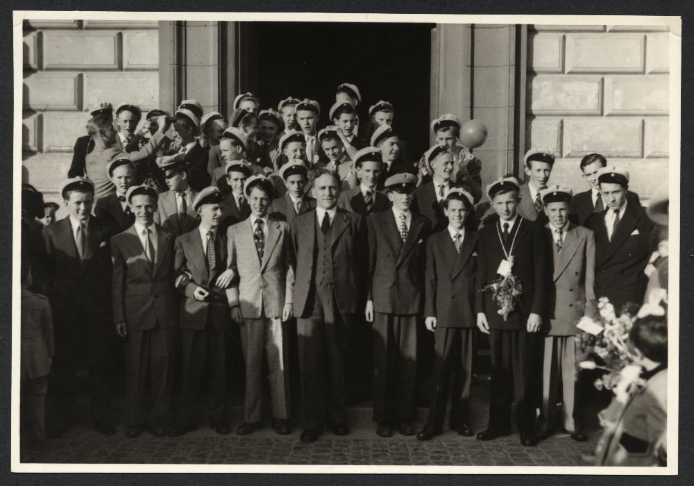 ROO 008187:001 :: studentmössa, gruppbild, man, studentmössor, män