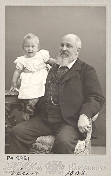 Porträtt av handlanden Ludvig August Ståhle, tillsammans med sin dotterson Hans Bolinder våren 1903.