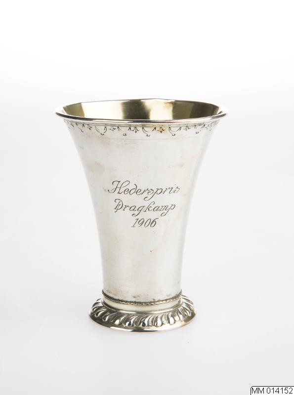 dekor. Graverad inskrift på sidan: Hederspris Dragkamp 1906.