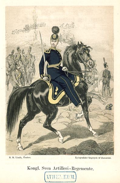 Uniformsplansch, xylografiskt färgtryck, föreställande "Kongl. Svea Artilleri-Regemente".