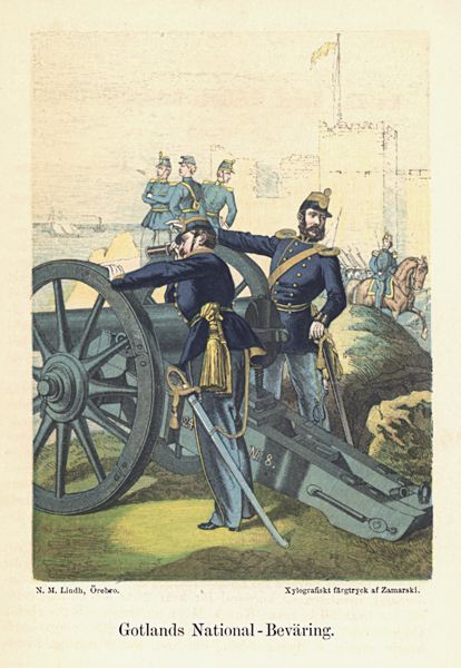 Uniformsplansch, xylografiskt färgtryck, föreställande "Gotlands National - Beväring".