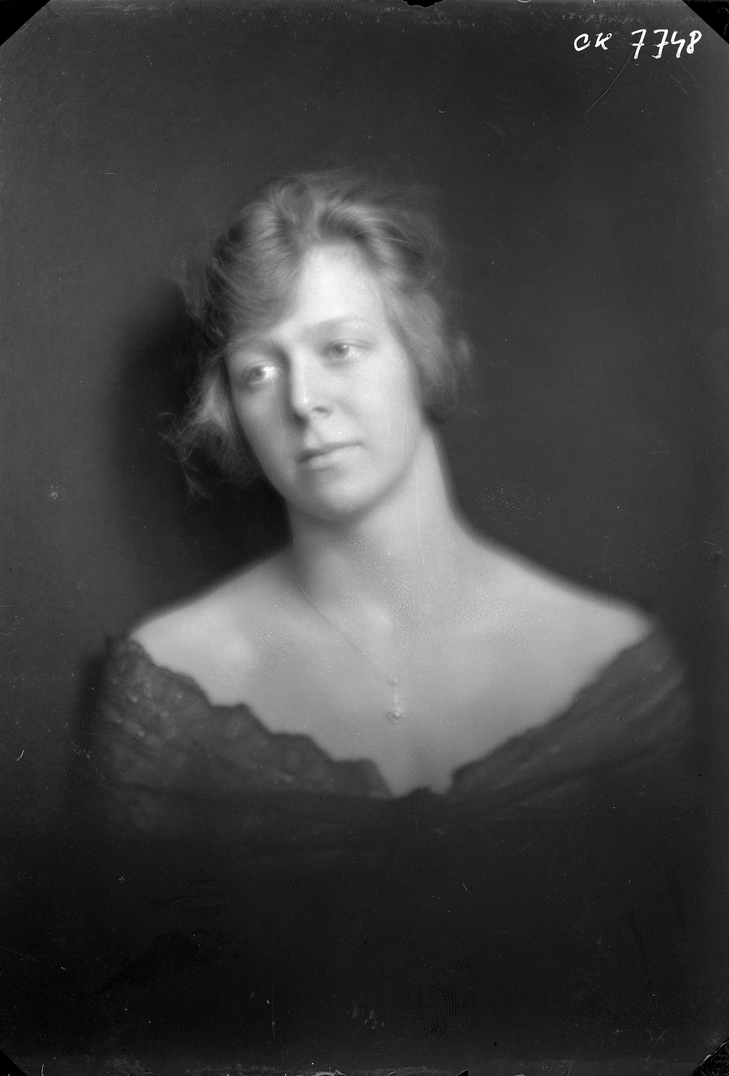 Porträtt i halvfigur av tennismästarinnan Vera Bendz.