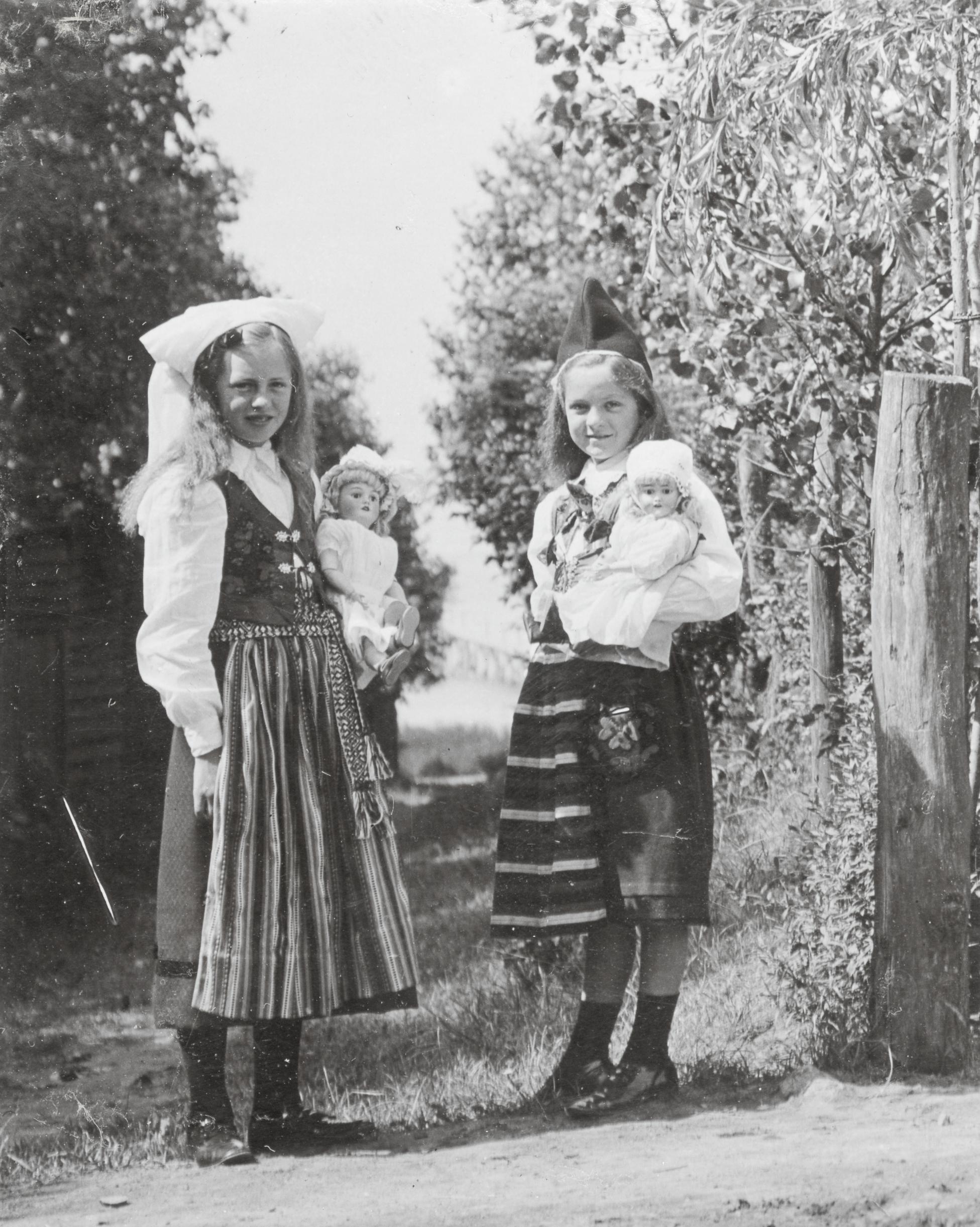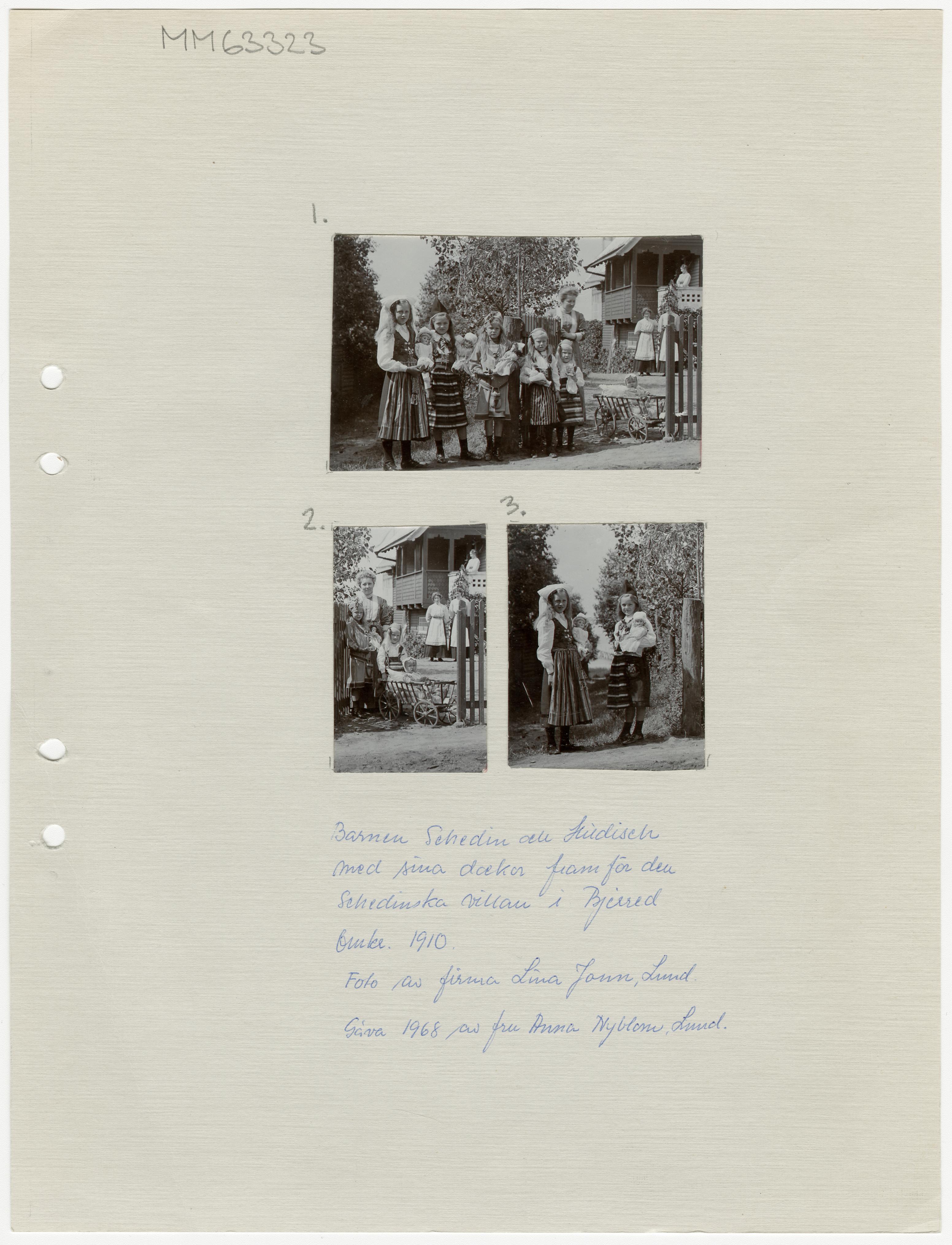 Barnen Schedin och Hildisch med sina dockor framför den Schedinska villan i Bjärred, omkring 1910.