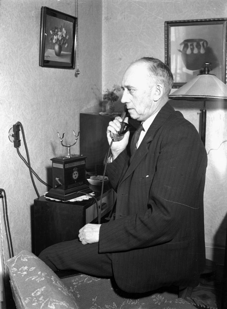 BOL 001071 :: telefoner, sportradiokommentator, sportradiokommentatorer, telefon, danskar, man, gunnar "nu" hansen, män, dansk