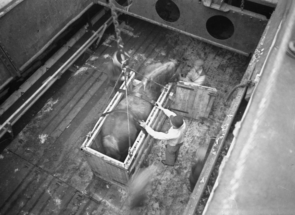 Utomhusbild som visar en hästtransport till sjöss, i Malmö hamn.