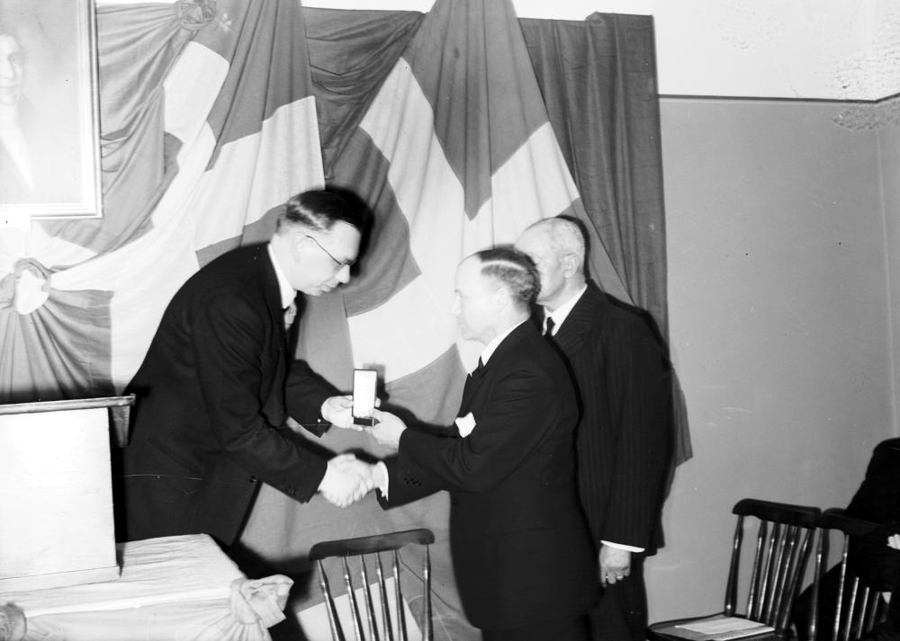 BOL 001603 :: fanor, prisutdelningar, tillställningar, flaggor, pris, fana, flagga, man, prisutdelning, män, tillställning