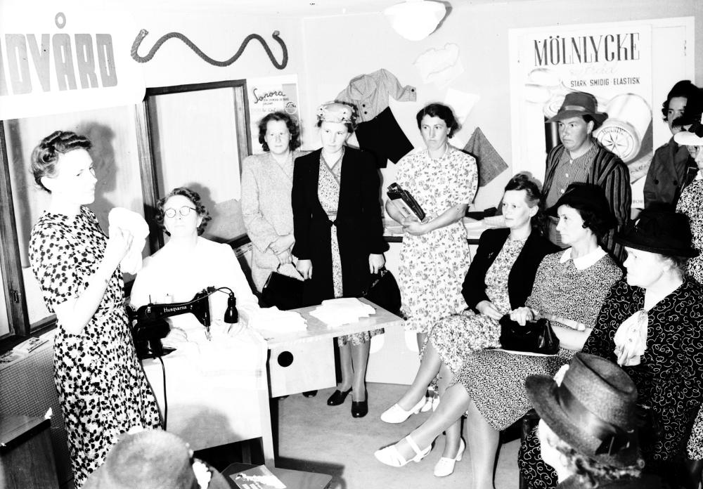 BOL 001684 :: symaskin, kvinna, bord, symaskiner, kvinnor, tyg, syslöjdskurs, syslöjdskurser