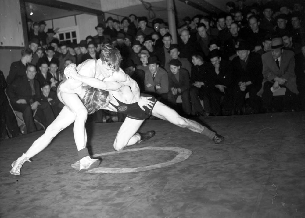 BOL 001692 :: matcher, pojke, publik, åskådare, brottar, man, pojkar, match, män