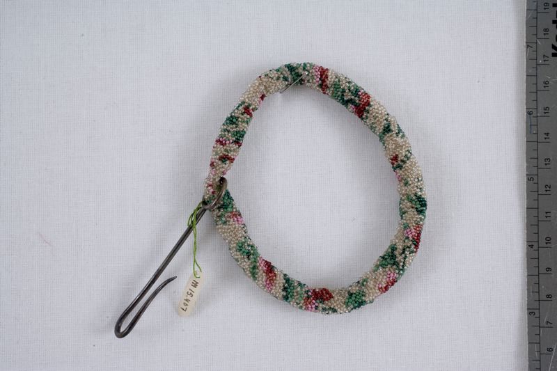 Nystring,med invirkade glaspärlor i flera färger. Krok av vitmetall.