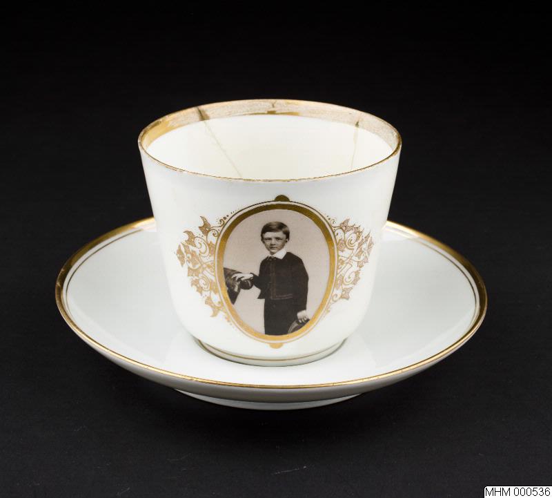 omramning av på koppen reproducerad familjeporträtt (foto av ung pojke).