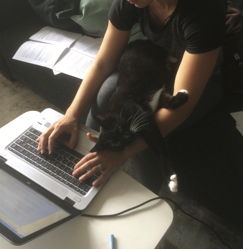 MM 063285:009 :: kontor, dator, katt, corona, arbeta hemma, covid-19, arbete, hemmakontor, pandemi