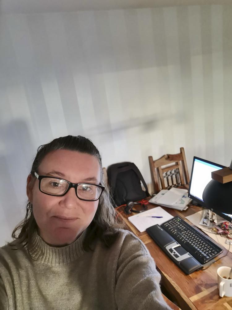 "Har står jag framför min tillfälliga arbetsplats i hemmet.