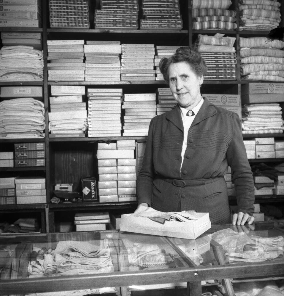AOL 000003 :: kvinna, affär, manufaktur, disk, kläder, butik, butiksbiträde, konfektion